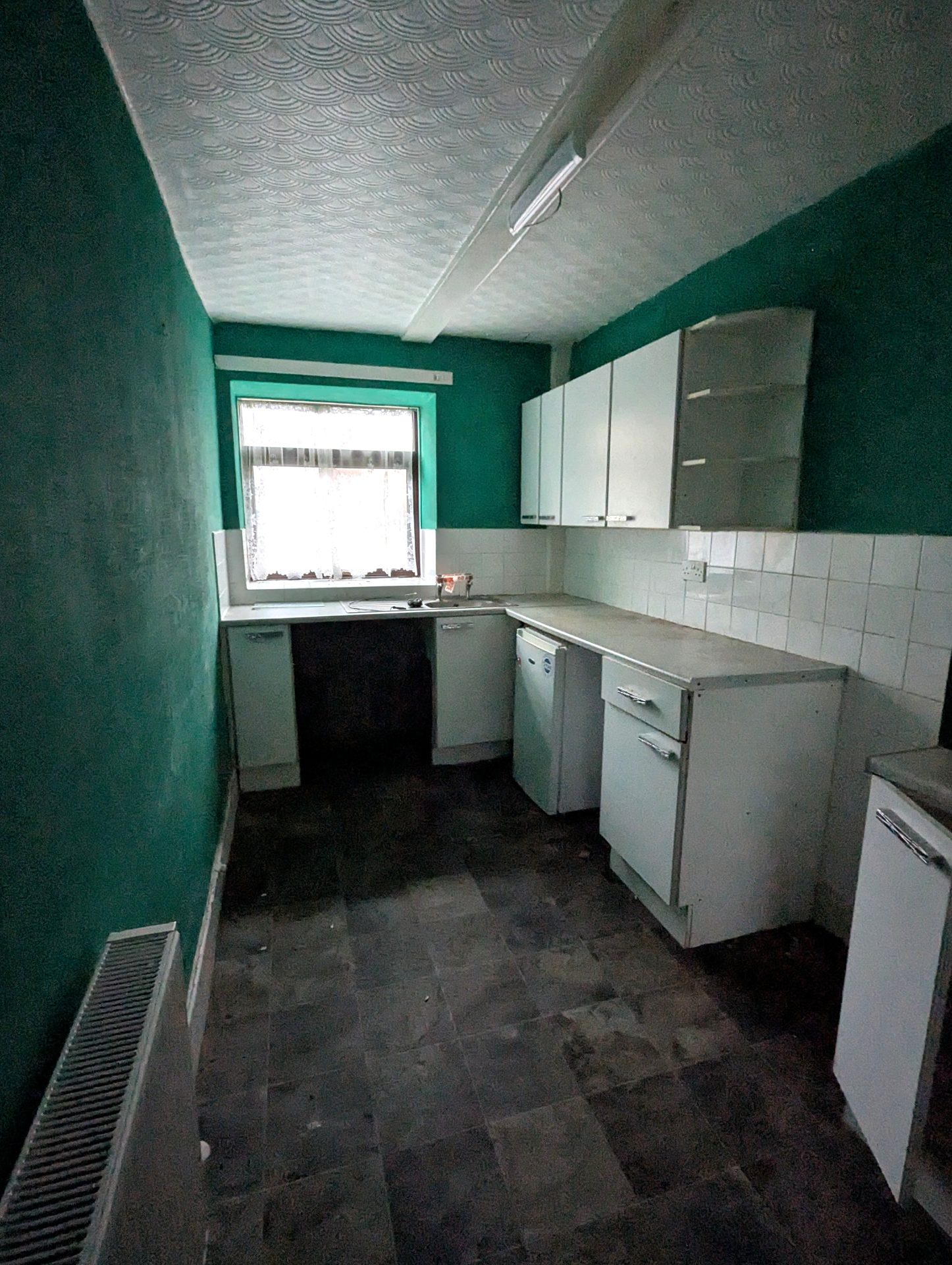 Fitted base and wall units, stainless steel sink & drainer, double glazed window to the front and to the back of the property. Door into the entryway. Vinyl flooring. Radiator.