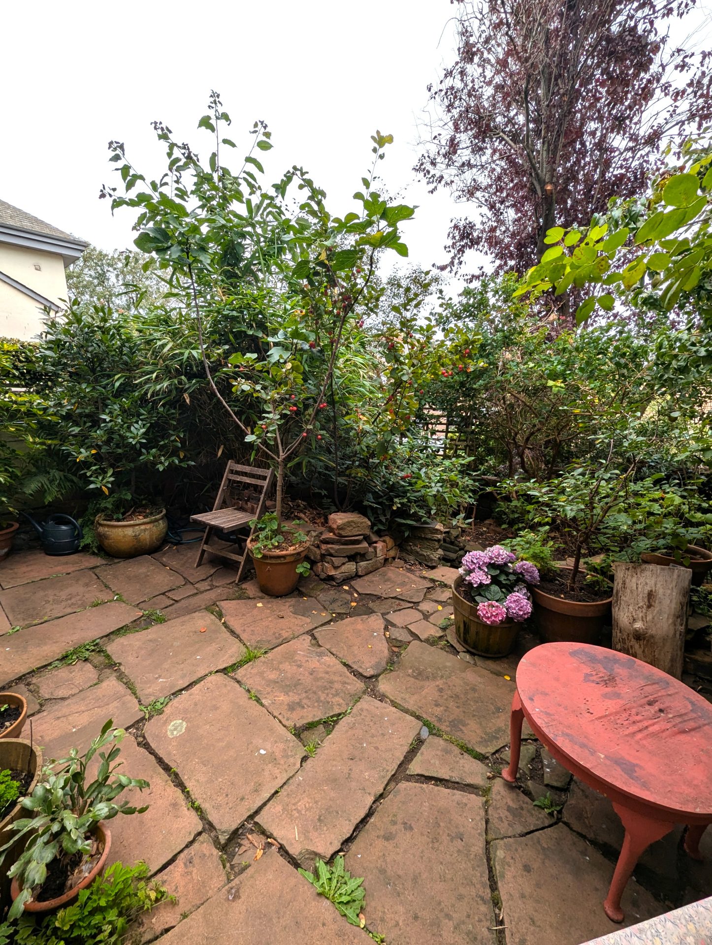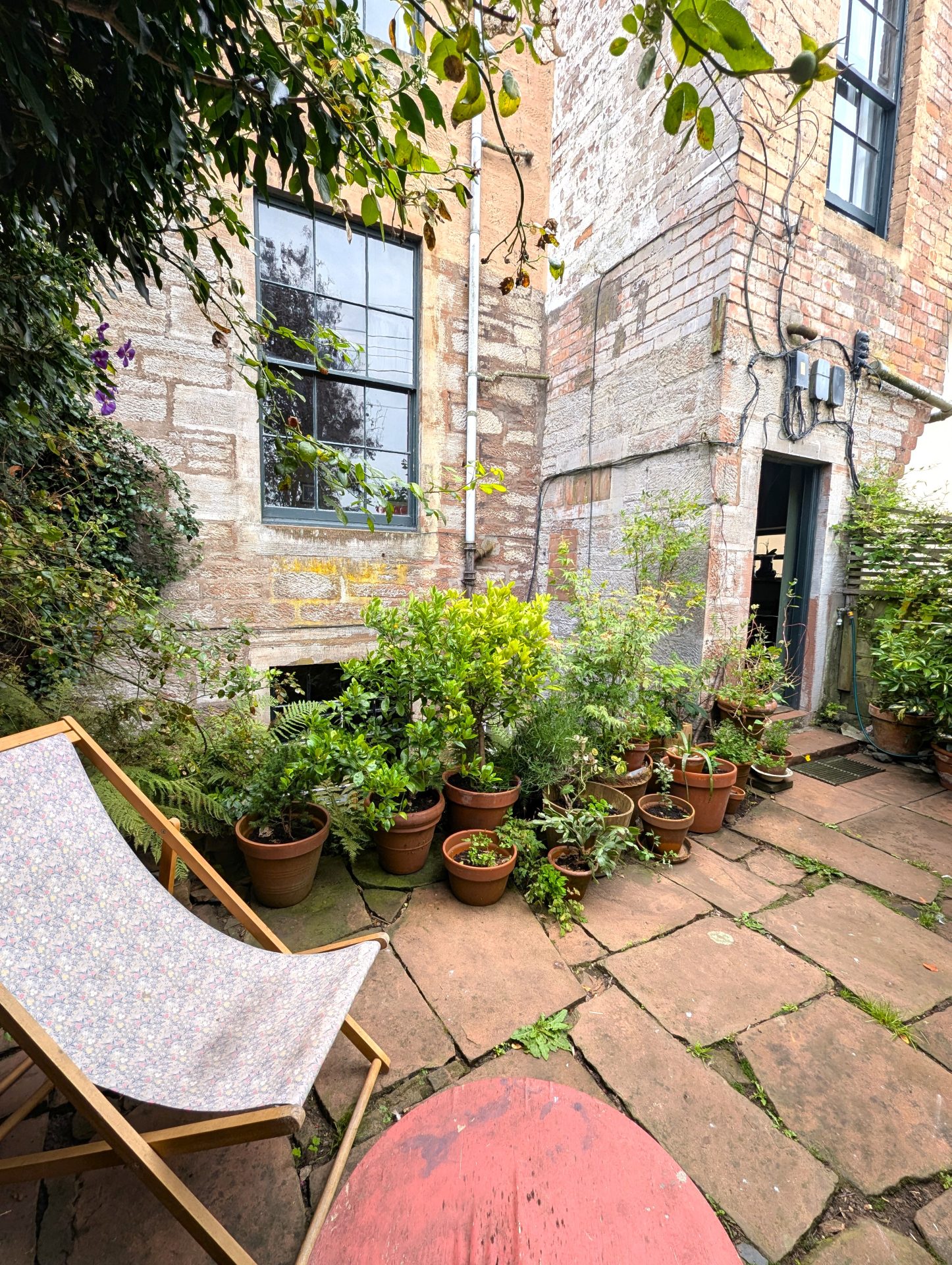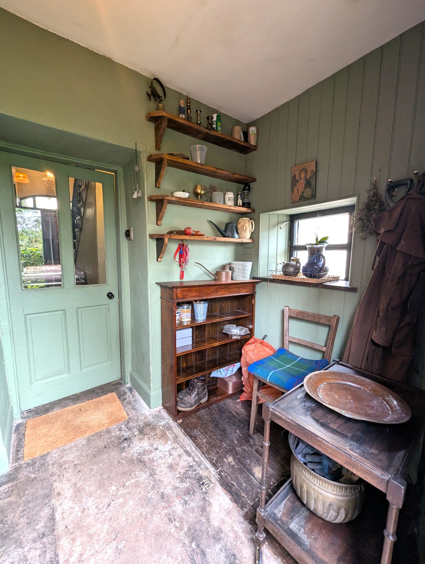Rear porch with door into the ground floor hallway and door out to the rear garden, window to the side of the property.