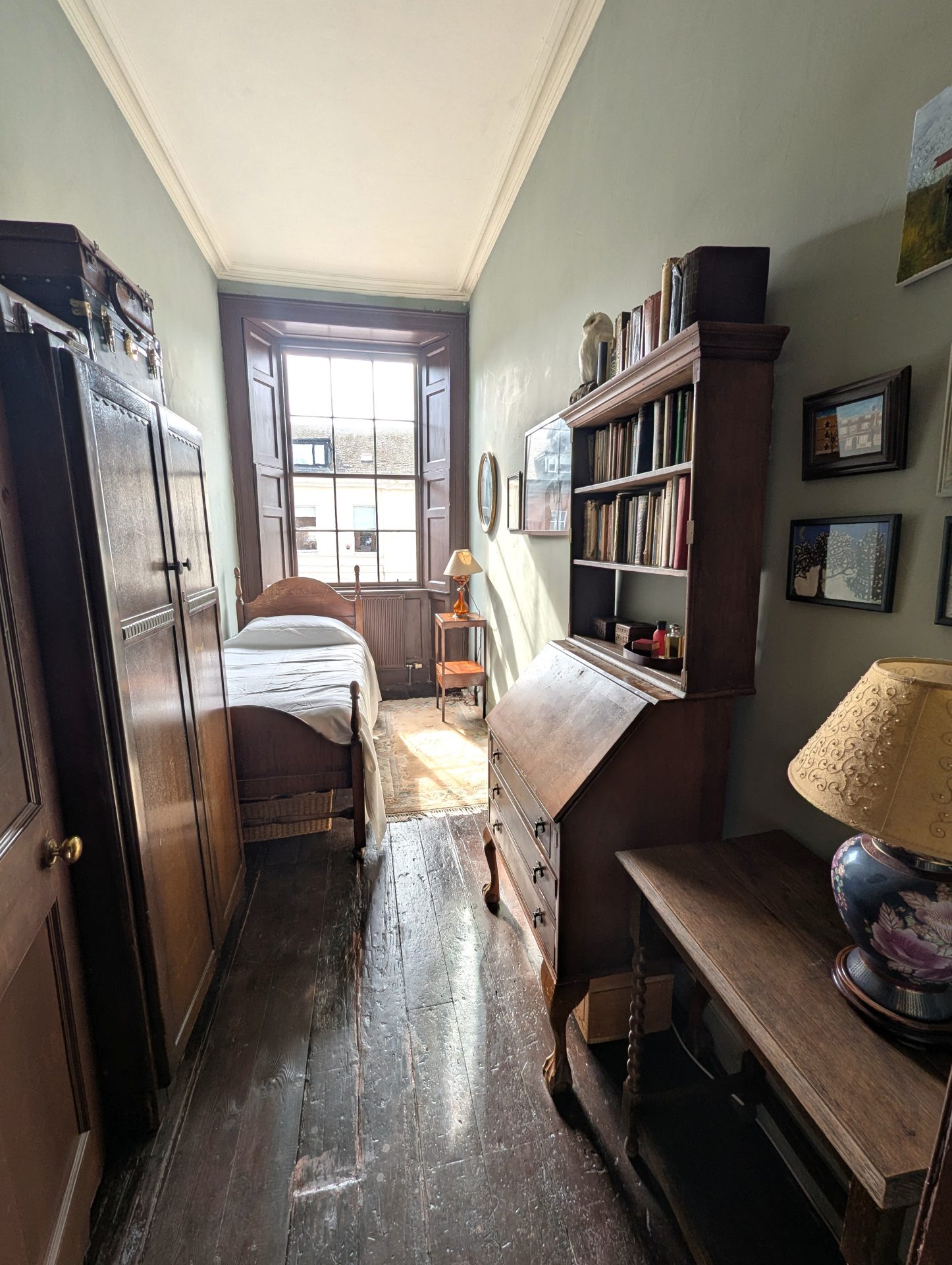 Door into bedroom three from first floor hallway, radiator, window overlooking the front.