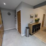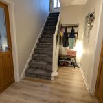 Entry by uPVC door with glass panel into the entrance hall. Laminate flooring, radiator, stairs to upper accommodation, doors leading into the garage, WC, living room and into dining kitchen.