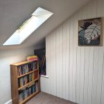 Stairs leading to attic rooms, fitted carpet, attic hallway with storage cupboards, doors to bedroom 4 and office.