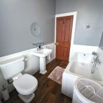 Karndean tiled flooring, wash hand basin, WC, bath, double glazed window to the front of the property, radiator.