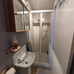 Karndean tiled flooring, quadrant shower cubicle with waterfall shower. WC, wash hand basin, radiator, frosted double glazed window to side of the property.