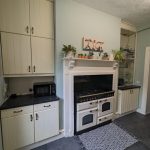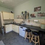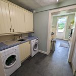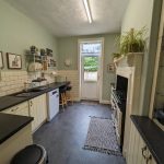 Vinyl flooring, radiator, uPVC door with double glazed window out to the rear garden. Range master cooker, integrated fan, fitted base and wall units with a glass display cabinet. Black sink & drainer with vegetable section, brass tap, plumbed for dishwasher, Breakfast bar.