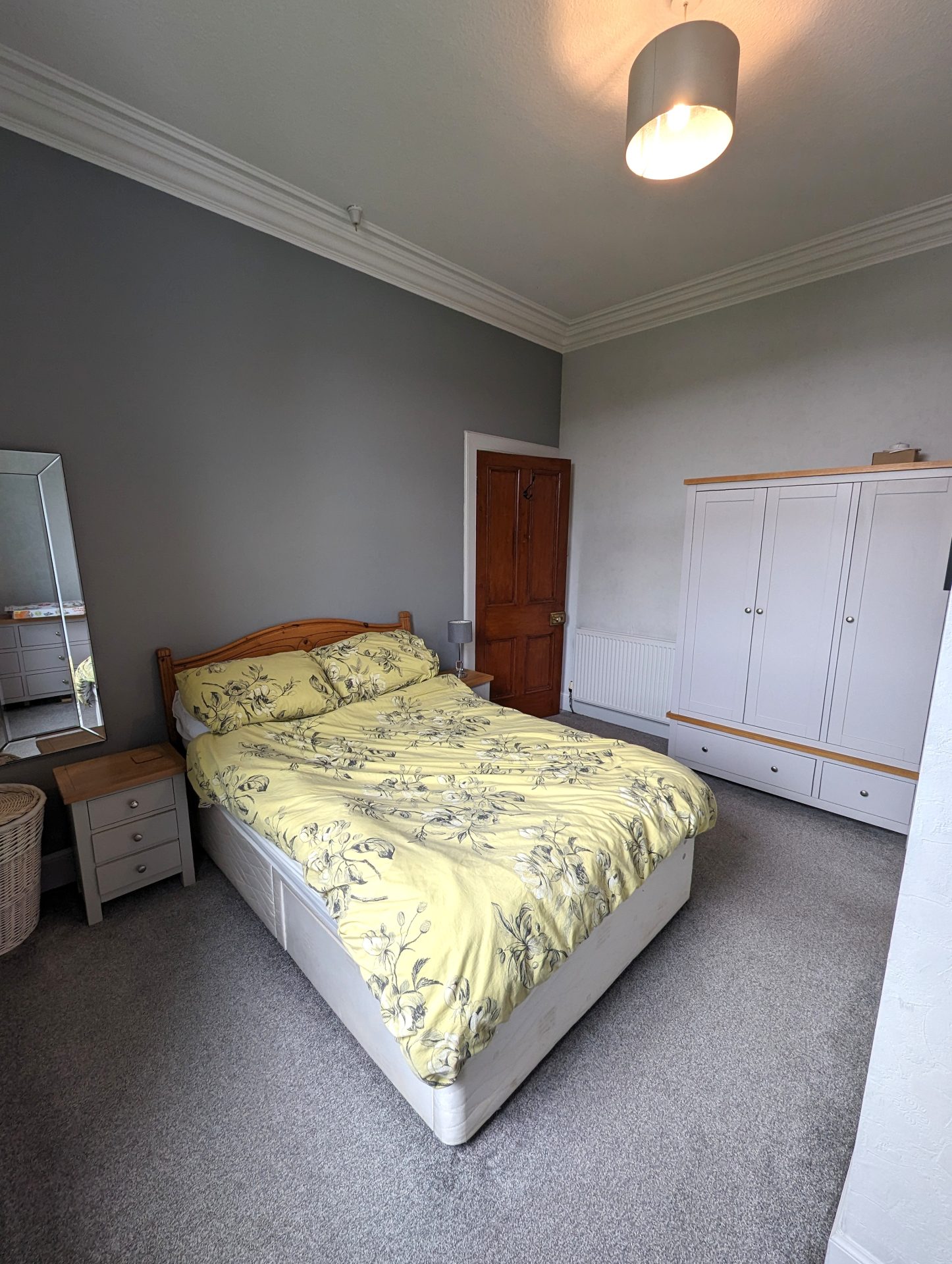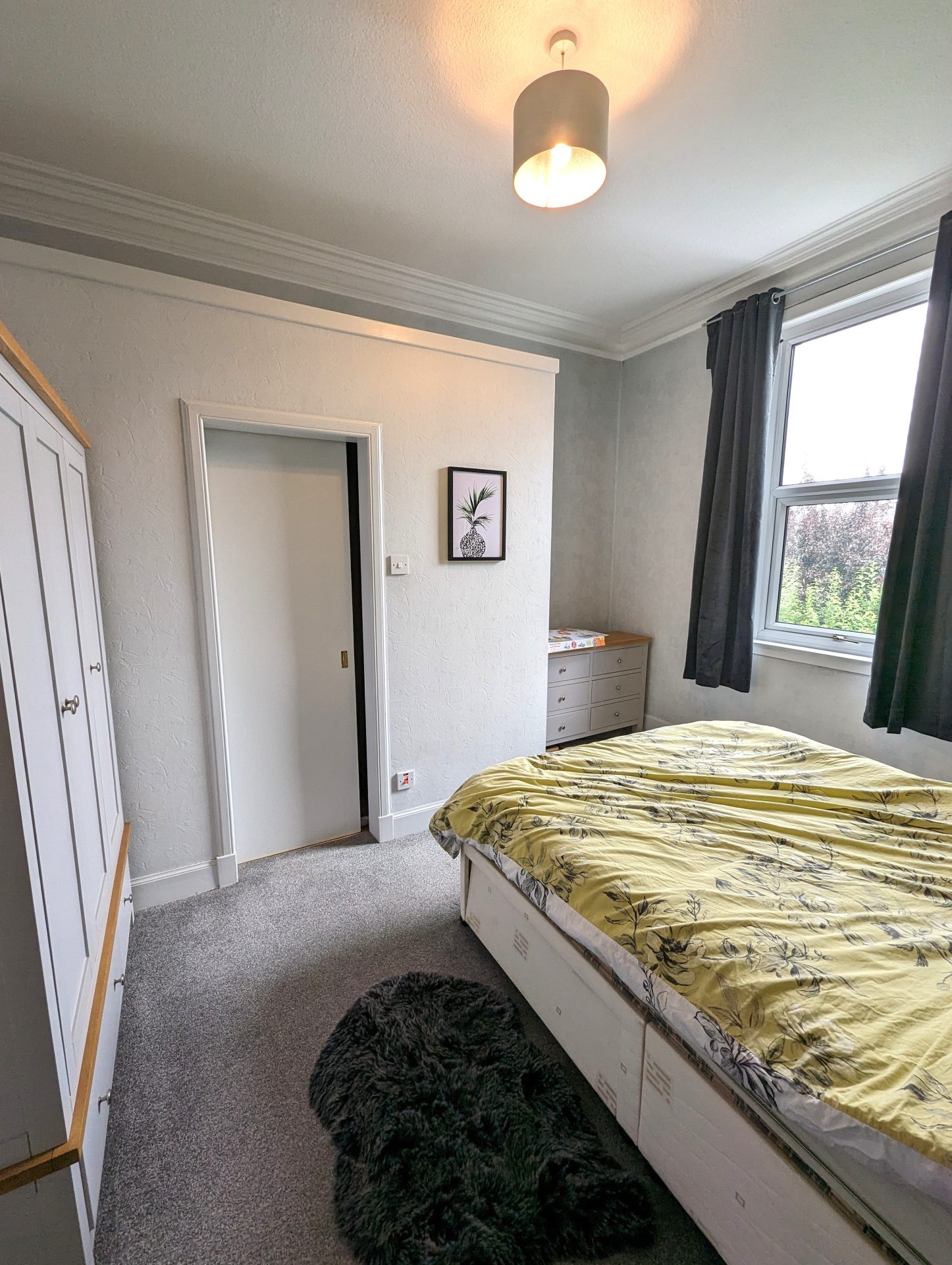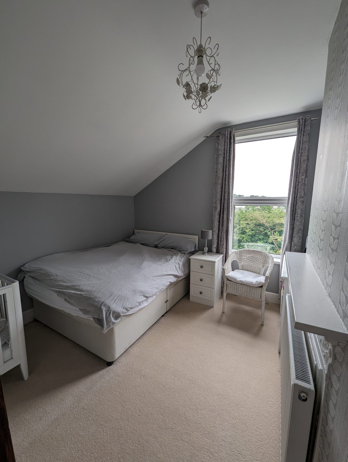 Fitted carpet, radiator, double glazed window to rear. En-suite with pocket door, shower, WC and wash hand basin.