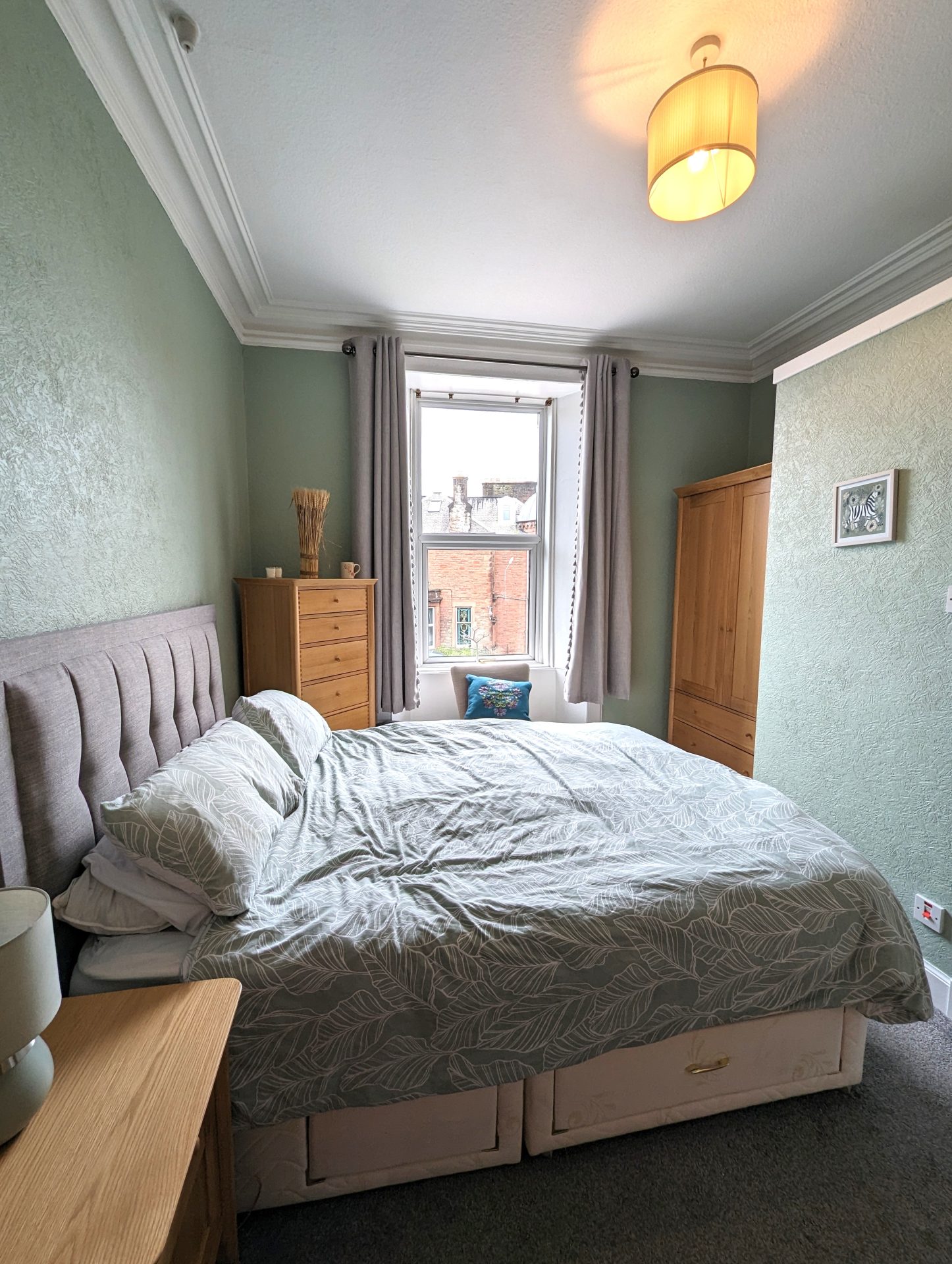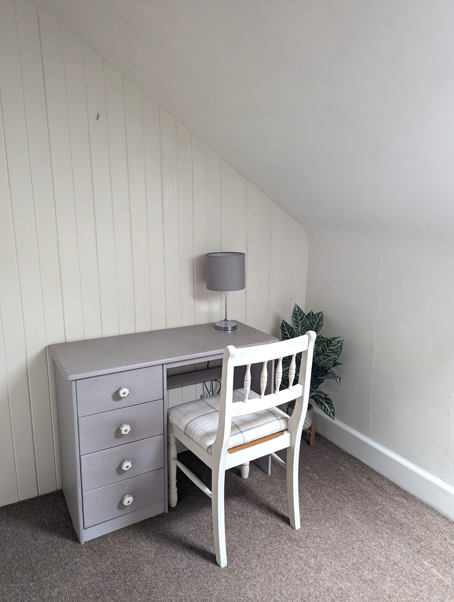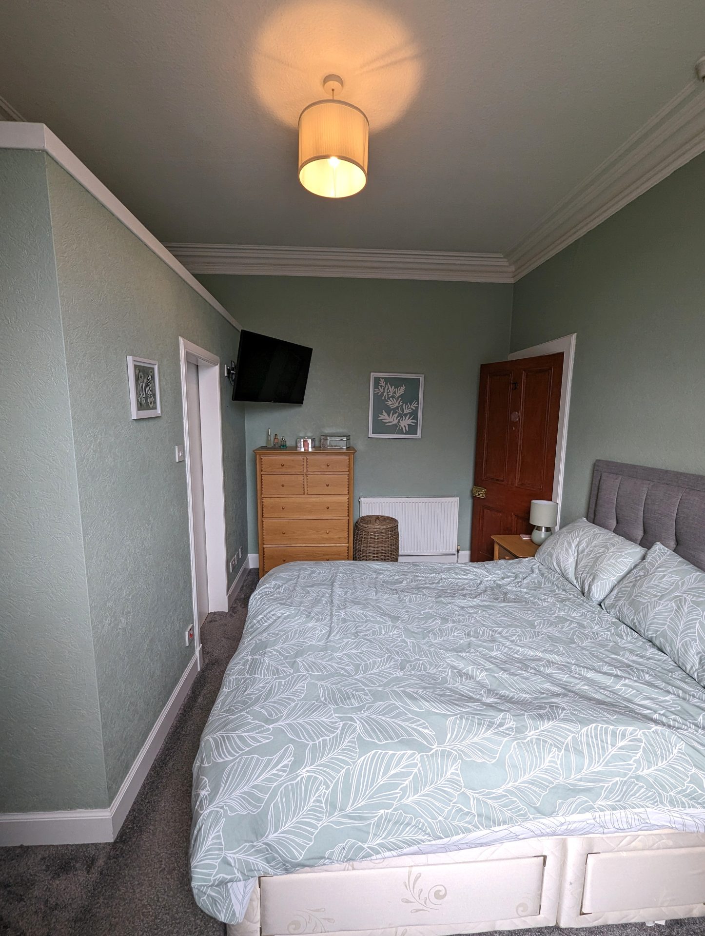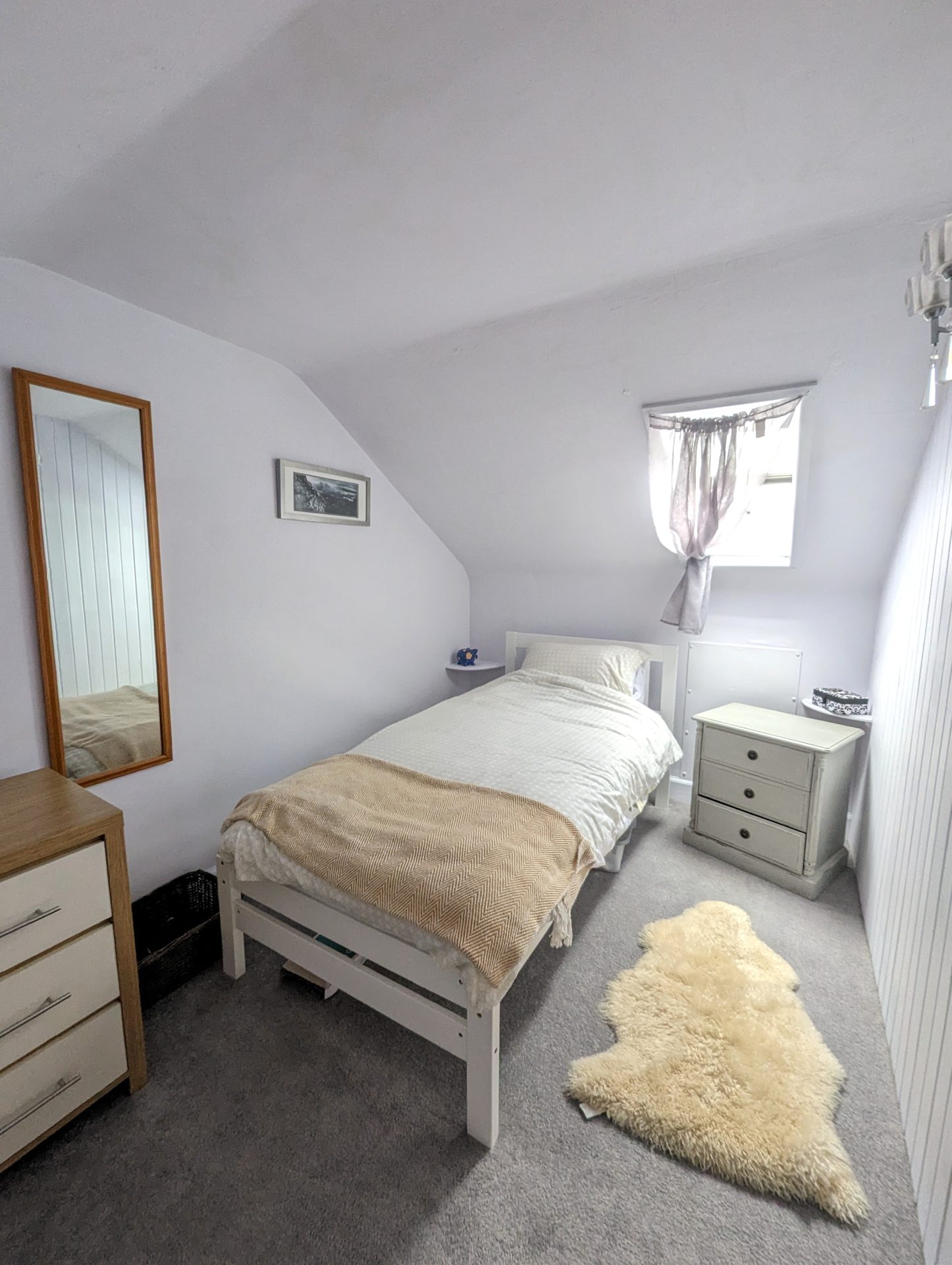 Fitted carpet, radiator, double glazed window to rear. En-suite with pocket door, shower, WC and wash hand basin.