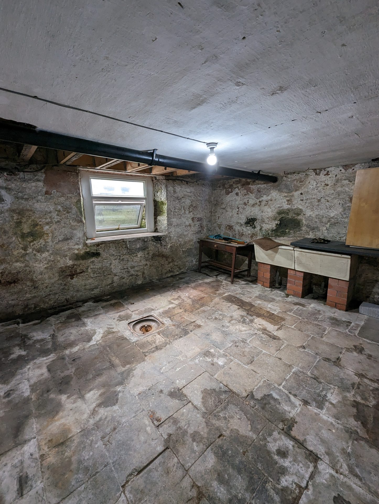 Concrete floor, double glazed window to the front, light, plug sockets, fuse box and electric meter.
