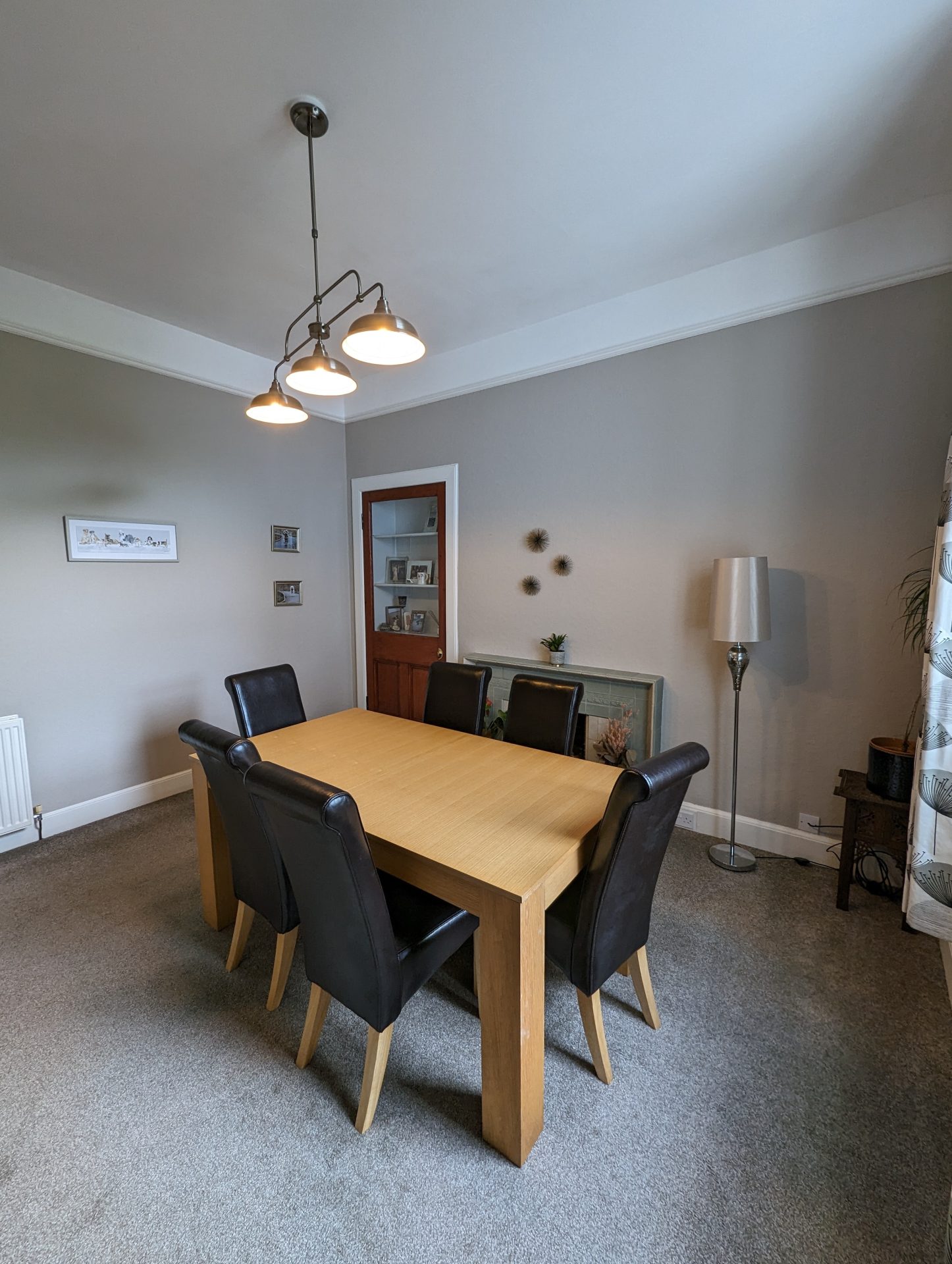 Four bedroom semi-detached townhouse on the Moffat road, a short walk from the train station which provides transport links to both north and south of the border. This property benefits from a private rear garden, off street parking to the front and flexible living with four bedrooms, four bathrooms, living room, dining room, kitchen, utility and basement.